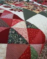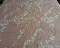 Из квадрата сделать треугольник не составило труда  :-X, размеры тоже мои, т.к. размер нужен был 2спальный, получился 183х209см. Наполнитель - термофинн150 - очень мне он понравился в эксплуатации и   шитье.Бэк - сатин. Ну и 7,8м бейки пришиты вручную (часа времени).