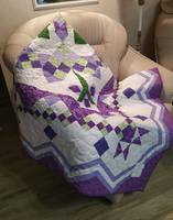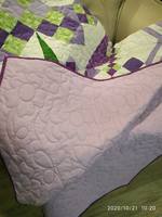 У кого-то осень, а у меня почти весна, все не как у людей :D. Ещё летом придумала и сшила этот квилт, использовав все остатки сиренево-фиолетовых тканюшек. Наташа Светилова очень удачно, на мой взгляд, простегала цветочными мотивами. Хотела сфотографировать на осеннем газоне, но, увы, поздно, дожди.