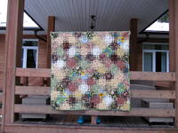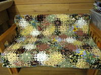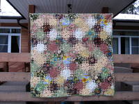 И последняя законченная работа этого года. Маленькое 130х130 покрывалко на диванчик в мастерскую. Название длинное, но на мой взгляд, очень соответствует- «Затянуло  бурой тиной гладь старинного пруда». Покрывало сшито пл МК нашей Наташи Миляевой, Миланы в ИГ . Наташа, спасибо за проект. Очень хочется сшить что то еще в этой технике. Традиционно стежка от Лены Barri.