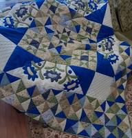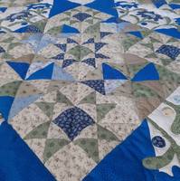 Я не очень люблю шить повторы работ. Но, тяжело отказать хорошему человеку, согласилась, но, другая цветовая гамма должна быть.Сине-зелено-бежевая... выложила свои запасы, по фото отобрали. Так как это не мои цвета, поэтому 1 день стопочка тканей "мозолила" мне глаза, и я с ней смирилась, и поняла, что в природе же есть сочетание синего с зеленым.