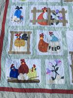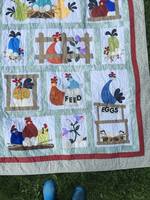 Похвастаюсь и я! Сшила мужу на день рождения вот такой пледик. Муж в этом году завёл 6 курочек, построил курятник на колёсах. Получил звание «Заслуженный куровод СНТ Энергетик», благодарность всей семьи за 6 свеженьких яиц каждый день и этот плед! :D