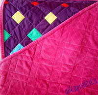 Размер небольшой 98*134 см. Еще и поэтому решила тут попробовать плюш, большой бы не простегала. Наполнитель  решила не ставить, чтобы был пушистый пледик, а не одеялко. Квадратики из тканей наших закупок, а фиолет  - все еще остатки от моего фиолетового большого покрывала (и еще не расшила остатки  :D). Так что девчонки, спасибо вам за советы плюшевые, очень пригодились  :give_rose: