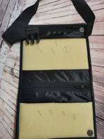 У меня органайзер для рыбака . В развернутом виде 36х22,в собранном 16х22х4. Кармашки мелкие по 3 см,поролон для крючков(или это не крючки называется?  ;D ,не помню),наружный накладной карман,тоже на молнии. Застежка на карабин и кнопка- это жесткие требования заказчика !Шаг влево,шаг вправо - бан! Фотографировать черный цвет проблемно. Интересный заказ. Сегодня отдала. а мне второй заказали, с небольшими изменениями. Оказывается, как мне сказали, везде предлагаются в магазинах органайзеры из пластика,т.е.,коробки.