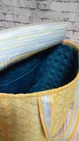 Сшила для приятельницы сумку пляжно-дорожную. Дорожную -потому что очень удобно- вроде как легким движением руки закидываешь на регистрации сумочку на плечо, в которую входит ровно столько же,сколько и в чемодан ! А если еще и ручная кладь есть, так ты и вообще в шоколаде ! 29х38х15. На сумку ушло две половинки разных платьев, все закрыто органзой. Внутри один карман.