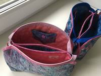 Я тоже покажу , какие косметички сшила летом. Они, конечно, не такие сложные , как показанные девочками сумки. Но я старалась  :blush: Косметички двойные, сшила таких аж пять штук. Одну себе, а другие - подругам на именины. Последняя - обычная одинарная.