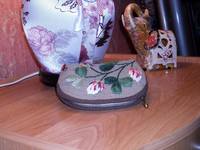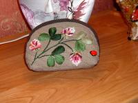 заметила за собой особенность: когда долго не стегаю руками, потом при стежке пальцы плохо слушаются. Решила периодически разминку для пальцев делать. Вот и решила косметичку сшить. Да не просто так, а еще и в вышивке поупражняться. Нравится мне рококо. Может и освою когда... :-X Результат моей разминки перед вами.