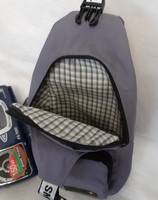 я тоже не с пустыми руками к вам пришла. Сумка для внука-подростка 12,5лет. Сшита из плащевки, уплонители не применяла, подклад - рубашечная ткань, размеры 33х16х7см