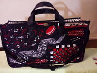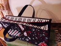 Девушки, добрый день (по Москве). У меня, к большому сожалению, ничего серьезного пошить за лето не удалось да и доделать тоже (дачный сезон). Но сумочку из музыкального принта, купленного здесь, я сшила. Хотя планировалось из него покрывало для музыканта. Вмешались, как всегда , непредвиденные обстоятельства, понадобилась сумка-переноска для музыкальной приставки. На окантовку и ручки ткани не хватило, добавила из того, что было. Вот, что получилось.