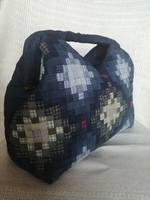 Дошила я сумочку-баульчик, шили с Ольгой Денеш. Из японского фактурного хлопка, 1584шт квадратиков 1х1см, шита вручную, стежка на лицевой части ручная. Шила с конца мая, причем только её, думаю если только я отложу это безумие в сторону, то никогда не начну потом)))) Опять же рамка из Японии под нее была заказана и получена.