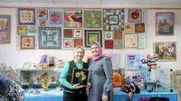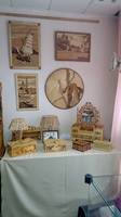 В этой же комнате и работы двух мастеров. Женщина - картины из шпона делает, а ее друг выпиливает лобзиком. Тоже из Берегинь