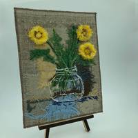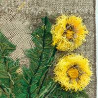 Девушки, я осваиваю новые материалы и новые возможности. Небольшое панно, я бы сказала текстильная картина 15х20 выполнена в необычной технике .Назвала её "Одуванчиковое утро" потому что шилось оно по утрам.