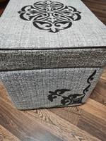 Мне кажется,сие произведение я не показывала. Ну,сделаем вид,что и правда ,не помню. Потому что пуф муж сделал раньше,год как я его обшила или обтянула,короче,шила чехол, а обтягивал,конечно,он. И только вот совсем сейчас он внутри закрепил крышку. Год интенсивного пользования показал,что дорогущая ткань для обтяжки-говно.Катышки.. А вот аппликация моя живее всех живых. Все четыре стороны одинаковы по две.