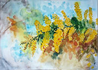 Не знаю, как вы, а я как только заканчиваются новогодние праздники уже начинаю ждать весну. А какой самый весенний цветок для вас? Для меня это мимоза. И как новый год для меня невозможен без елки и "Иронии судьбы", так и Восьмое марта немыслимо без букетика мимозы. Вчера рисовали цветы. Кто-то рисовал герберы, кто-то сирень, а мне безумно захотелось нарисовать мимозу. Бумага, акварель.
