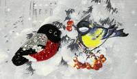 Что-то зациклило меня на синицах. Но очень захотелось попробовать именно эту птицу в другой технике.