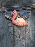 Брошь "Фламинго". Здесь я научилась делать объемную вышивку. Получился очень интересный результат  :good2: