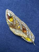 Брошь "Перо". Вышивка канителью жесткой и мягкой, чешскими стразами, пайетками, камушки сваровски.