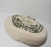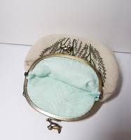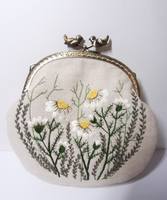 Сначала была вышивка с ромашками (вчера закончила), а сегодня уже родилась вот такая сумочка с моими любимыми фермуарами. Фермуар 12см, высота сумочки 14см, обратная сторона простегана с применением бисера. Ткань - полулен. Осталось найти цепочку...