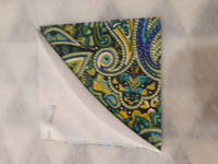 Прикладываем четвертую, только прикладываем. Правый уголок можно зафиксировать,  обрати внимание на уголок, где голубая ручка