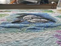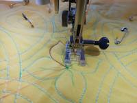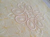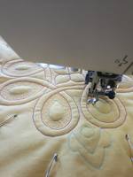 Собираем сэндвич-верх, наполнитель, бэк. Теперь на медленной скорости проходим все линии. Особо смотрим те места, где линии переплетаются. Используем лапку для аппликации. На этом этапе ещё можно что-то исправить. Поэтому Госприёмка необходима...
