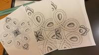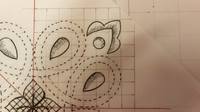 Каждый элемент обстрачиваем по контуру. Помним, что в трапунто важно, что бы контур был закрытый. Заполняем свободное пространство мелкой стёжкой. Чем мельче вы сможете сделать стёжку, тем рельефнее будет рисунок трапунто.