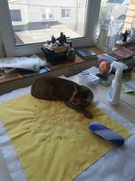 Прострочила по контуру, обрезала...Наложила следующий слой наполнителя, на другой фрагмент рисунка