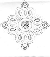 При желании, рисунок можно увеличить или уменьшить. Очень легко это можно сделать с помощью принтера, изменив настройки. Ещё легче с помощью копировальной техники.Но не у всех под рукой есть эти чудеса техники. Для того, что бы увеличить или уменьшить чертёж, надо разлиновать его на квадраты. На квадраты разлиновать чистый лист, и перенести все точки пересечения линий рисунка с линиями сетки.Соединяем плавными линиями, обводим толстым маркером. Рисунок должен хоть немного просвечивать через вашу ткань.