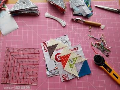 Результат моих выходных 24 блока. Девочки, а вы все блоки шьете на одном шаблоне или меняете шаблон на новую бумагу? Я шью сразу четыре блока на 4х шаблонах.  Мне показалось , что бумага (шаблон) под утюгом немного уменьшается.  :) ???