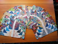 Мои 120 блоков-четвертинок готовы! Не думала. что так быстро их сошью, тем более , когда полный дом гостей-внуков, и в саду нынче каждое дерево постаралось дать урожай! Я очень довольна, понравилось шить по бумаге, сидишь себе, строчишь не думая о том, совпали уголки или нет. ;) Класс! В большие блоки соединила, а дальше пока затор, нет подходящей ткани на соединительные полоски и на бэк, да и времени сейчас нет этим заниматься, поэтому откладываю до осени.