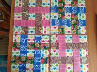 Я тоже сшила, оказалось 40 блоков. Вначале нарезала 28 полосок и почему-то у меня в голове отложилось, что мне надо еще 12. На другой день дорезала 12 и фоновые. Когда стала выполнять первое задание, не хватило фоновых - очень удивилась - ведь их точно пересчитала. Не догадалась сосчитать цветные, нарезала недостающие - в результате 40 полосок, но я не расстроилась, пригодятся.