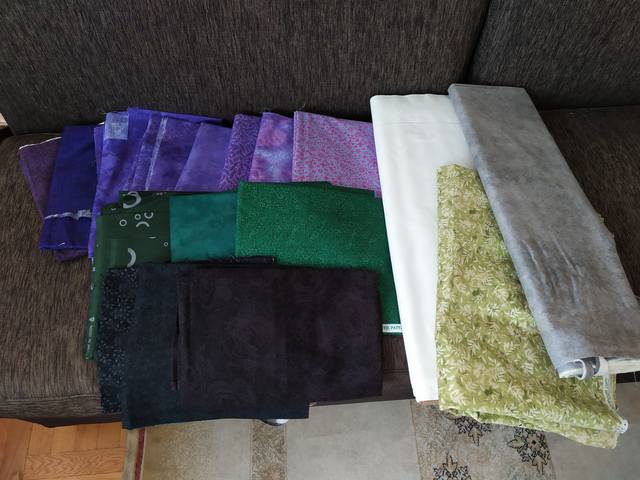 Оказалось у меня не так много фиолетового, значит будет уклон в скраповость... вот , предположительно , мой набор тканей.