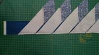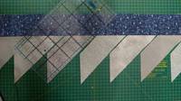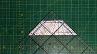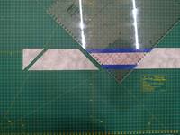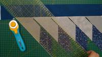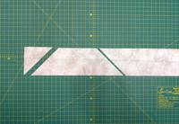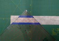 Пришили, аккуратно отгибаем трапеции и утюжим не растягивая. Разрезаем полосу, прикладывая линейку к длинной стороне