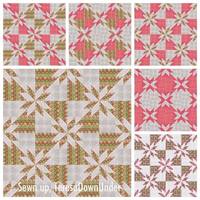 Первый лист - блок 3 3/4" (16 блоков на подушку 15 "), второй - 7 1/2" (4 блока на подушку 15") и третий - 10", это уже на одеялко с идеальными звездочками.