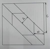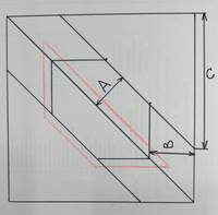 - квадраты для угловых треугольников = расстояние С+припуск 3 см (или 1 дюйм) (у меня 21 см или 8 дюймов), которые разрежем по диагонали.