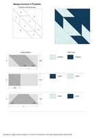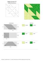 Рассмотрим сам блок. Это простой квадрат, разделенный пополам диагональю, плюс две параллельные диагонали линии. Участки между диагональю и линиями разделены на трапецию и ромбы. Дальше я расскажу как самостоятельно рассчитать размер деталей, но есть один нюанс. В эталонном блоке ромбы равносторонние и при сшивании образуют звезду с абсолютно симметричными лучами. Но рассчитать это достаточно трудно, поэтому будем действовать на глаз (или воспользуемся программой EQ8 ). В результате может получится звезда с не идеально симметричными лучами, но это нисколько не портит квилт (посмотрите на пример номер 5, там именно такие звезды).