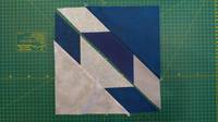 Соответственно, чтобы построить блок, чертим квадрат нужного размера, проводим диагональ. Параллельные линии проводим, определяя расстояние на глаз и так, чтобы удобно потом было кроить. Например, я взяла 5 см. Теперь эту параллельную линию делим на три и ставим две точки, через которые проводим линии, параллельные краям блока, чтобы получились ромбы. Всё, блок готов.