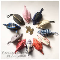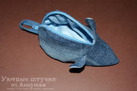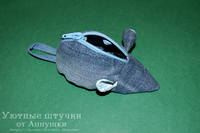 19. Мышку из подкладочной ткани не выворачивая вставляем в уже готовую монетницу.