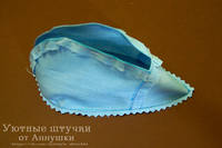 13. Выворачиваем мышку через приоткрытую застежку. Но перед выворачиванием острый мысок подрезаем. Вот твк.
