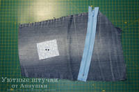 6. Притачиваем застежку «молнию» с лица. Важно следить, чтобы застежка начиналась и заканчивалась на одном расстоянии от края деталей. Верхняя часть молнии начинается чуть ниже припуска на швы. У меня металлическая закрепка «молнии» находится примерно в 3-5 мм от абриса детали.