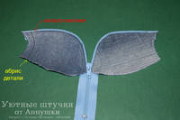 15. Повторяем шаг с наметкой припуска на шов на спинке. Но еще и приметываем припуск на шов на детали головы.