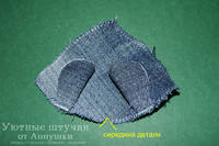 •   Кусок плотной ткани (хлопок, бязь, шерсть, можно использовать старые джинсы. Я шила их из тазиковых остатков.