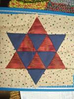 Картонка, Катя , возьмете опоздавшую :) ? как кто то писал , надеюсь и шью ? Так я еще крою и надеюсь :)) Не очень люблю по бумаге , принтера дома нет ,  к тому же и блок захотелось побольше и линейка 60* есть :) вот родилась , первая звездочка , сорри что не отутюжена , но мои надежды почти оправдались :)