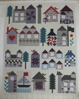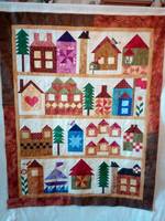 Готов мой топ  деревушки для рукодельниц! Кайму не делала,нет подходящей ткани. Фото не очень,солнце нас не балует особо! Алена! Спасибо за СП! Домики строились легко! Теперь одна проблема, как стегать,пока ничего для себя не решила.