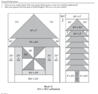Надя, Надя, я шила и не задумывалась над размерами. 15 и 1/2" это получается блок без елочки. Я кроила и шила по схеме,так как иногда встречались неточности в раскрое,а на схеме тоже все с размерами. Полосы я уже собрала и все сошлось горизонтально и вертикально все четыре улицы.