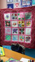 Hemulena, Ален, вот это первый квилт нашего клуба (совместный). Каждый шил цветочный блок, и приносил уже готовый, простеганный трехслойник. А потом Гузель его собирала и делала канву. До стежки канвы, все было нормально, а после стежки стало фалдить.