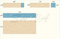 Таких деталей д.б. 5 шт. Размеры детали на схеме. Отрезаем 2 куска фоновой ткани 7,5 х 7,5 дюймов и цветной 3,5 х 7,5 дюймов. Сшиваем между собой, заглаживаем швы и разрезаем на 5 деталей шириной 1,5 дюйма.