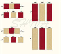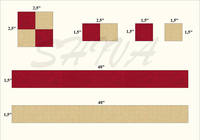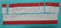 Таких деталей д.б. 10 шт. На схеме указан размер детали. Вырежьте из нужных тканей 2 детали, размеры деталей указаны на схеме, сшейте их между собой, заутюжьте шов и разрежьте на полосы шириной 1.5 дюйма.