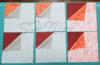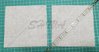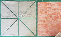 Квадратики по 5 дюймов, разложены парами по цветам как и большие. Размечаем только по одной диагонали, диагональ и по ¼ дюйма в каждую сторону.