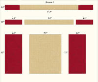 Для детали 2 отрезаем 2 прямоугольника из цветной ткани 4,5 " х 12"  и один из фоновой ткани 9,5"х 12" и также сшиваем их по длинной стороне.