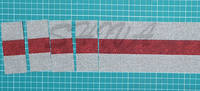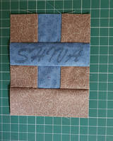 Для детали 1 отрезаем 2 прямоугольника из цветной ткани 3,5 " х 12"  и один из фоновой ткани 9,5"х 12" и сшиваем их по длинной стороне.