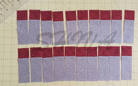 Отрежьте полосы указанной ширины из цветной и фоновой ткани. (я отрезала 2 куска по 15 дюймов длиной), сшейте их, заутюжьте и разрежьте на 20 деталей шириной 1.5 дюйма. (для всех нарезаемых деталях я заглаживала припуски всегда в одну сторону, правда почему то на светлую :blush: )